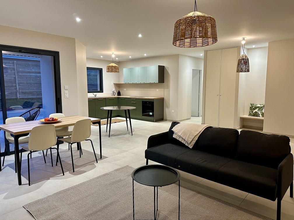 Cette maison neuve de plain-pied, se situe dans un petit lotissement au calme, tout en étant à proximité immédiate des commodités :
